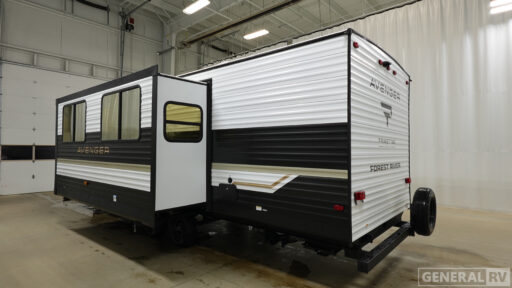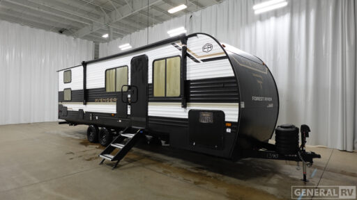 With any Avenger travel trailer by Prime Time RV, you will find innovation, a solid build, and comfort at every turn. Each model is built with Tuff Coat on the exterior metal, a fully enclosed underbelly, and a PVC roof membrane to help extend the life of your trailer. You will also find automotive name badging on the exterior, along with an exterior shower, front rail LED light strips, plus an XL padded entry grab handle to name a few conveniences. There are plenty of storage spaces inside, as well as Congoleum flooring and woven PVC marine grade slide out flooring, a designer shower surround, and seamless pressed countertops. You are sure to appreciate the onboard water filtration system, tankless water heater, plus 30K BTU furnace and 15K ducted A/C to help keep you comfortable.