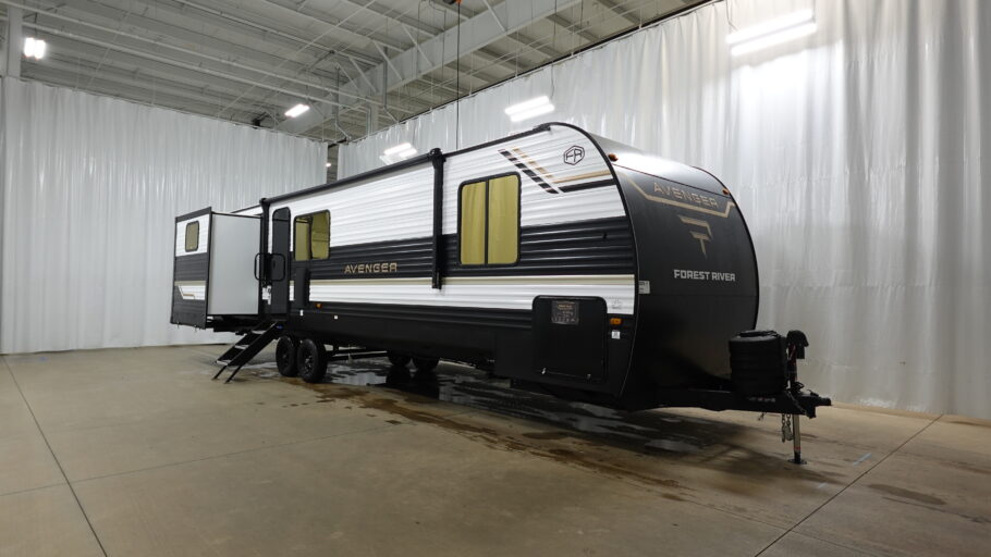 With any Avenger travel trailer by Prime Time RV, you will find innovation, a solid build, and comfort at every turn. Each model is built with Tuff Coat on the exterior metal, a fully enclosed underbelly, and a PVC roof membrane to help extend the life of your trailer. You will also find automotive name badging on the exterior, along with an exterior shower, front rail LED light strips, plus an XL padded entry grab handle to name a few conveniences. There are plenty of storage spaces inside, as well as Congoleum flooring and woven PVC marine grade slide out flooring, a designer shower surround, and seamless pressed countertops. You are sure to appreciate the onboard water filtration system, tankless water heater, plus 30K BTU furnace and 15K ducted A/C to help keep you comfortable.