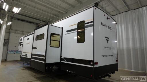 The Sanibel 39BUNK stands out with its thoughtful layout, including a dedicated bunk room that's ideal for kids or guests, offering privacy and comfort. With a fresh water capacity of 54 gallons and both gray and black water capacities of 78 gallons, your off-grid adventures are well-supported. The single awning extends your living space outdoors, perfect for enjoying scenic views and fresh air. Equipped with an 18,000 BTU air conditioner, this RV ensures you stay cool and comfortable no matter where your travels take you. For more details and to experience this model in person, visit your nearest General RV dealership.