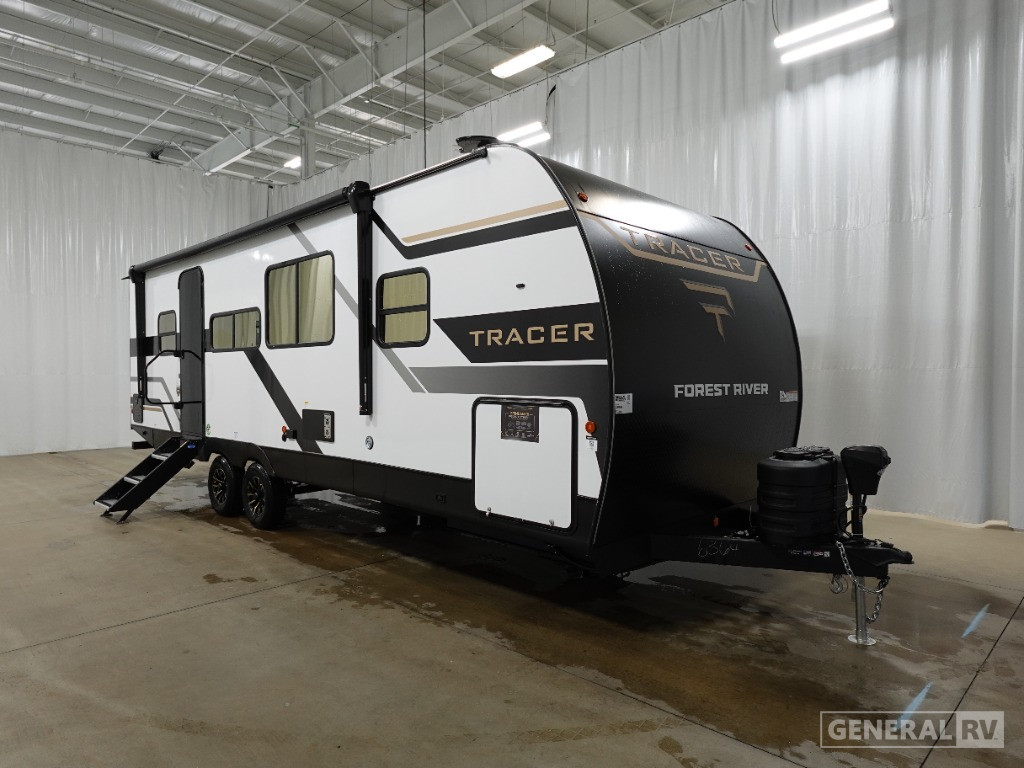 In the front, the inviting queen bed promises restful nights, surrounded by ample storage options to keep your belongings organized. The rear of the trailer features a well-appointed bathroom with a shower and a washer/dryer prep area, ensuring you have everything you need for extended trips. The powered retractable awning extends your living space to the outdoors, perfect for enjoying the fresh air and scenic views. Built with quality and comfort in mind, the Tracer 255DS is your ticket to unforgettable journeys. For more details, visit your nearest General RV dealership.
