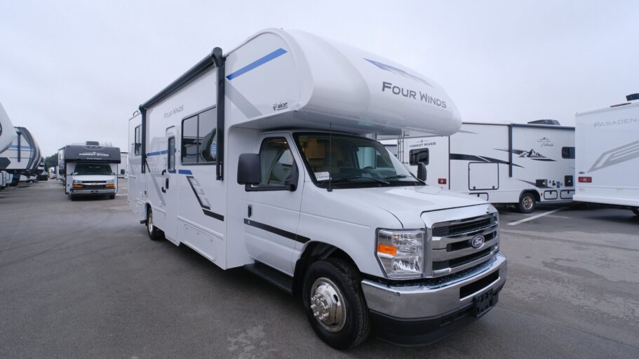 Step into the 2026 Thor Motor Coach Four Winds 28Z and experience a world where comfort meets adventure. This versatile motorhome, built on the robust Ford E450 chassis, offers a spacious layout perfect for family trips or a getaway with friends. With a length of 30 feet, it comfortably sleeps up to eight people, thanks to its cleverly designed sleeping arrangements, including a cozy queen bed, a double bed, and two convertible sleeping areas. The front living space is inviting with a 71" Dream Dinette and a 68" Jack-Knife Sofa, perfect for relaxing or entertaining.