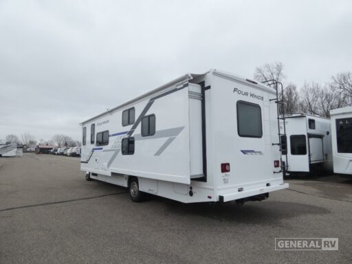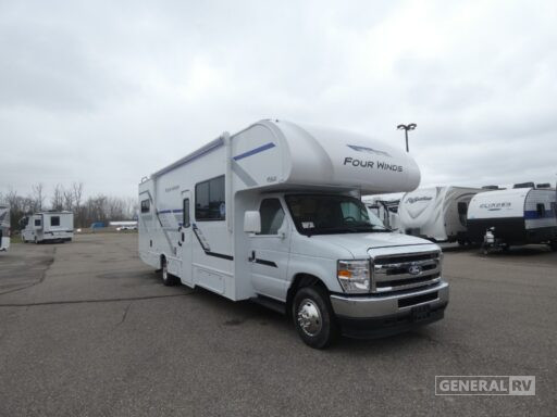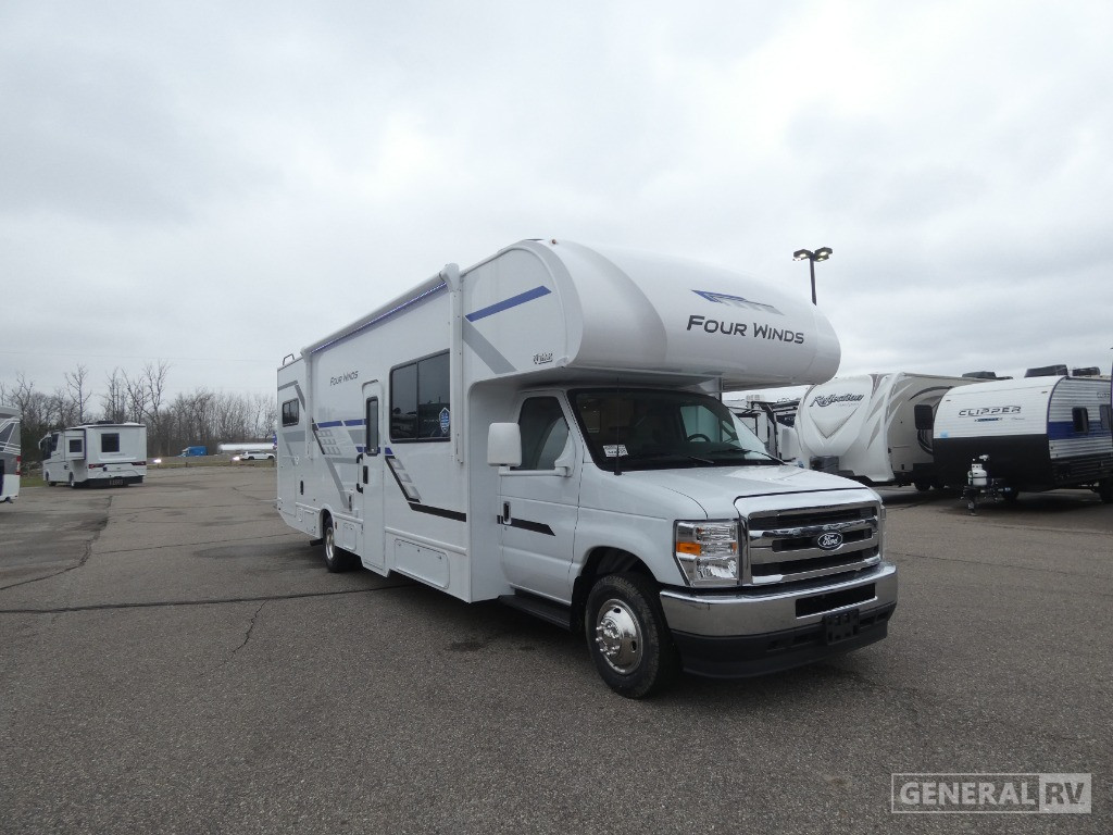 The 31EV floorplan offers a front living area that seamlessly transitions into a welcoming dining space with a 71" Dream Dinette and a 68" Jack-Knife Sofa, perfect for relaxing after a day of exploration. The rear bedroom provides a private retreat with a queen bed and ample storage, while the center bath offers convenience with a shower enclosed in plastic and glass. With a 16 ft. powered retractable awning, you can enjoy the great outdoors with ease. Built on a sturdy Ford E450 chassis with a powerful 325 horsepower engine, the Four Winds 31EV is ready to take you on your next journey with style and confidence. Visit your nearest General RV dealership to experience this remarkable RV firsthand.