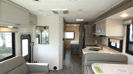 The A.C.E Class A gas motorhome is constructed with a welded tubular steel floor, vacu-bond laminated roof, walls and floor with block foam insulation, and a premium one-piece exterior roof for a coach made to last. You will love the pet-friendly features, like the Pet-Link multi-purpose tie-down and the Pull-Out Kibble Station with an FDS approved pet bowl liner. Each model includes an Onan RV QG 4,000 gas generator, a Winegard ConnecT Wi-Fi extender +4G, and are pre-wired for solar charging. Some of the other convenient amenities you will find on the A.C.E are framed windows, a basement pass-through storage, and an exterior LP connection. Head inside to find residential vinyl flooring, pressed laminate countertops, glass tile backsplash in the kitchen, and a wireless phone charger!