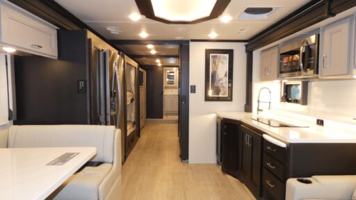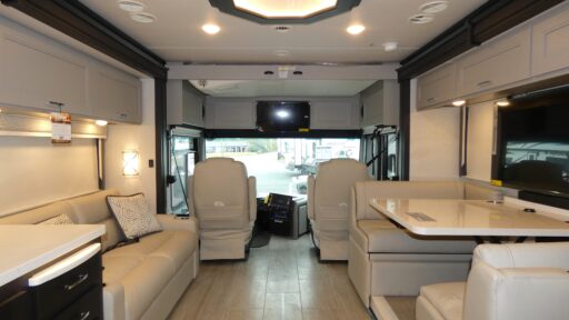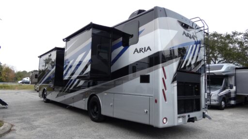 Discover the exceptional 2026 Thor Motor Coach Aria 4000, a luxurious diesel pusher designed to elevate your travel experiences. With its impressive 41-foot length, this motorhome offers a spacious and inviting interior, perfect for families or groups seeking adventure without sacrificing comfort. The heart of this RV is its center kitchen, equipped with a full-size electric refrigerator and a two-burner cooktop, making meal preparation a breeze. The generous 20-foot powered retractable awning extends your living space to the great outdoors, providing a perfect spot for relaxation.