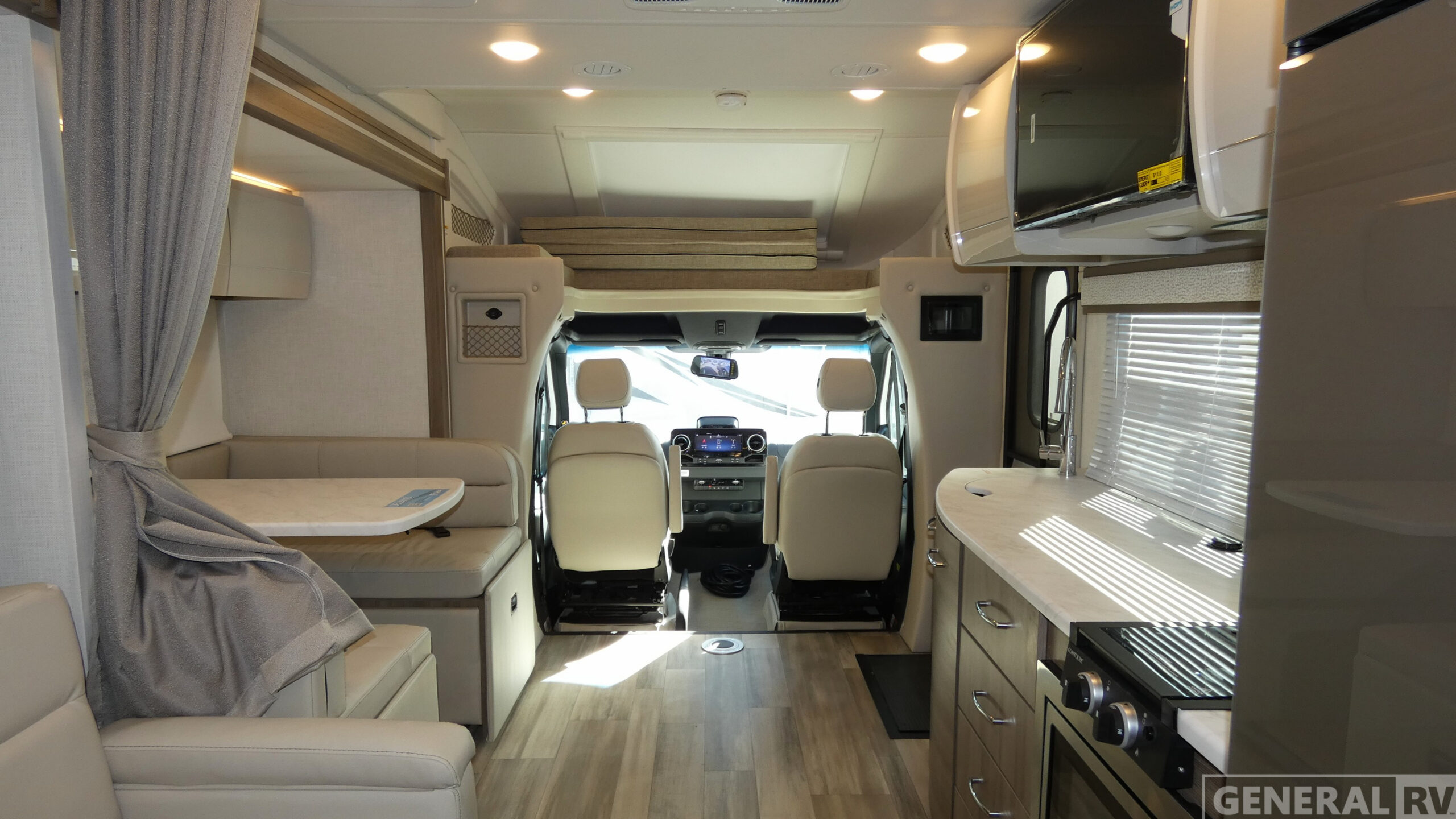 Experience the perfect blend of luxury and functionality in the 2026 Thor Motor Coach Delano 24FB. This remarkable RV, built on the reliable Mercedes-Benz Sprinter 4500 chassis, offers a smooth and powerful ride with its 211-horsepower engine and 332 lb-ft of torque. Measuring just over 25 feet, this compact yet spacious motorhome is designed to comfortably sleep up to five, featuring a queen-size Murphy bed and a cozy cab-over bunk. The thoughtful floorplan includes a front living area with a 70" Dream Dinette, perfect for family meals or game nights, and a center kitchen equipped with a mid-size electric refrigerator and convection cooking, making meal prep a breeze.