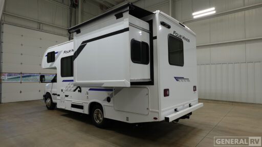 With any Four Winds ESpec Class C gas motorhome by Thor Motor Coach, you will find convenient amenities, a modern interior, and a reliable chassis. There is welded tubular aluminum roof and sidewall cage construction, a one-piece fiberglass front cap, and a one-piece domed roof membrane for added strength. Residential vinyl flooring will be easy to keep clean, and you'll love the sleek look of the Hampton Collection, two-toned cabinets. These motorhomes also include a 50 state 4.0 kW dual gas/LP generator and a 30-amp shoreline power cord to keep you going, along with a tankless water heater and 13,500 roof front A/C to ensure your comfort!