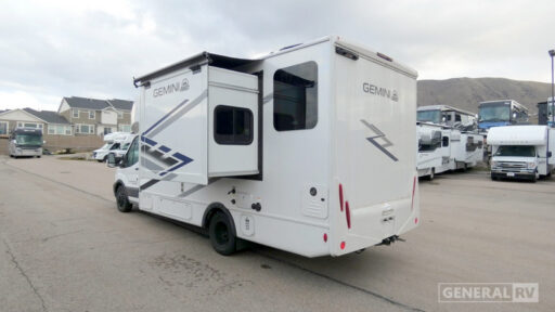 You have the ability to go anywhere with one of these Thor Motor Coach Gemini AWD Class B+ gas motorhomes! They have the perfect duo of an all-wheel-drive system and an AdvanceTrac with Roll Stability Control so you can feel safe navigating through the winding roads. Don't worry about getting lost either thanks to the AM/FM dash radio with SYNC 4, navigation, and an 8" color multi-function display. A 3.5L V6 EcoBoost turbo gas engine powers these units and a Ford Transit chassis holds them up. Stay connected with a Winegard ConnecT 2.0 with WiFi, a 4G hotspot, and even a TV antenna. You can even go off the grid with the 100-watt solar panel with a controller! Come find your favorite model today!