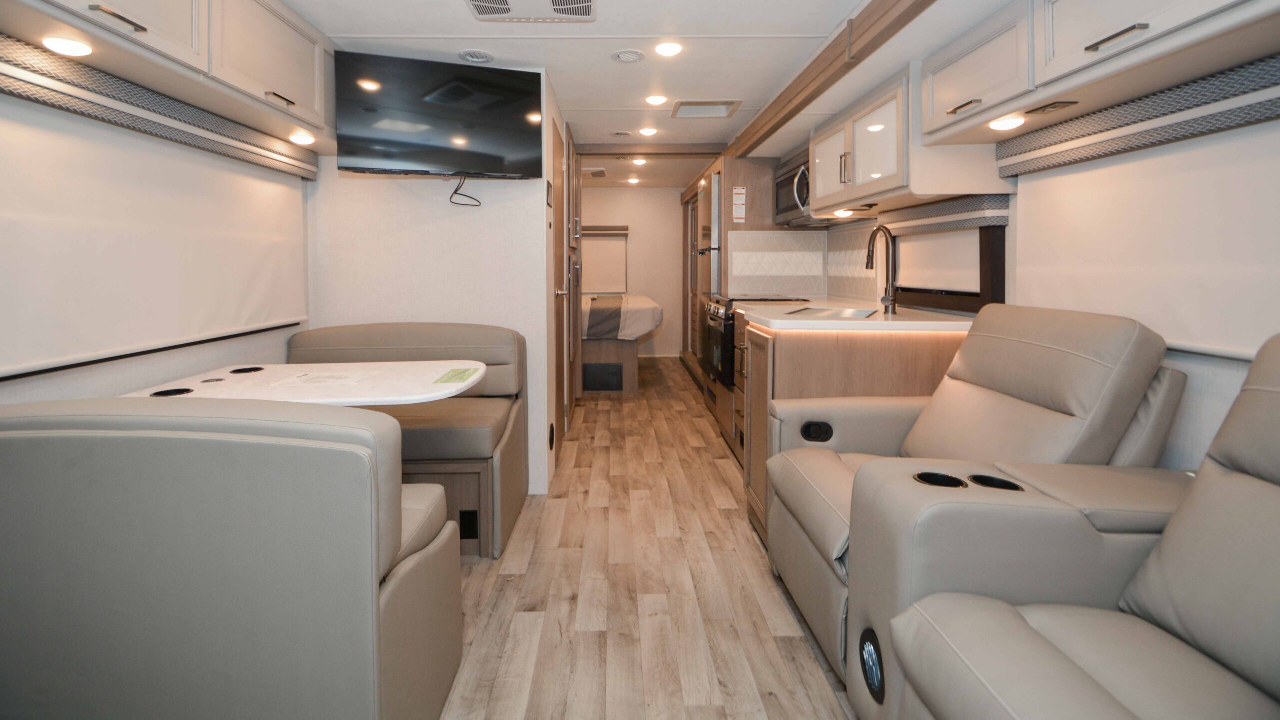 Experience the open road like never before with the 2026 Thor Motor Coach Hurricane 29L. This motorhome is a harmonious blend of luxury and practicality, designed to comfortably sleep up to eight adventurers. With its spacious king bed, full-size bed, and two convertible sleeping areas, everyone can enjoy a restful night's sleep. The thoughtfully designed floorplan features a center kitchen equipped with a three-burner cooktop and a full-size electric refrigerator, making meal prep a breeze.