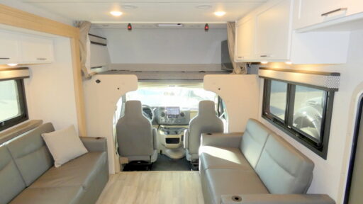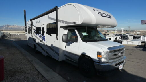 The Outlaw Class C gas motorhome toy hauler starts with the durable Ford E-Series chassis with a powerful 7.3L V8 engine that will allow you to adventure on! The 8,000 lb. hitch will be perfect for your car or motorcycle trailer, and the 10" touchscreen with a back-up monitor will let you maneuver the campground like a pro. This coach includes a Winegard ConnecT 2.0 WiFi/4G/TV antenna for all your connection needs, or you may want to unplug for a while with the 100-watt solar charging system with a power controller. The one-piece fiberglass front cap and sterling fiberglass exterior with a new graphics package is sure to be eye-catching, and automatic leveling jacks come standard for easy set-up. Head inside to find pressed laminate countertops throughout, leatherette furniture, residential vinyl flooring, plus many more comforts you won't want to travel without!