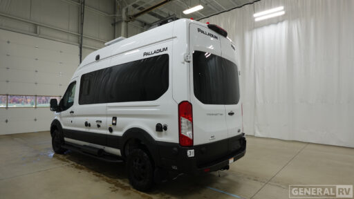 The rear bath, complete with a shower and closet space, provides all the essentials for freshening up on the go. Enhanced by the Ford Transit chassis and powered by a robust EcoBoost V6 engine, this RV offers a smooth and efficient ride. With a fresh water capacity of 20 gallons and a fuel capacity of 31 gallons, your adventures can be as spontaneous as your heart desires. The Palladium 1930 is your ticket to unforgettable travels, combining functionality with a touch of luxury. For more details, visit your nearest General RV dealership.