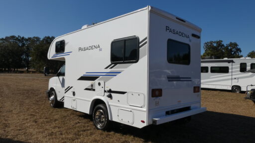 With any Pasadena SE Class C gas motorhome by Thor Motor Coach, you will find convenient amenities, a modern interior, and a reliable Ford E-Series chassis, with an optional Chevy chassis on select models to power your adventures. There is a one-piece fiberglass front cap, and premium one-piece roofing for added strength. Residential vinyl flooring will be easy to keep clean, and you'll love the LED lighting, pressed laminate countertops throughout, and full-extensions ball-bearing drawer guides. These motorhomes also include a 4.0 kW gas generator and a 30-amp shoreline power cord to keep you going, along with a tankless water heater to ensure your comfort!