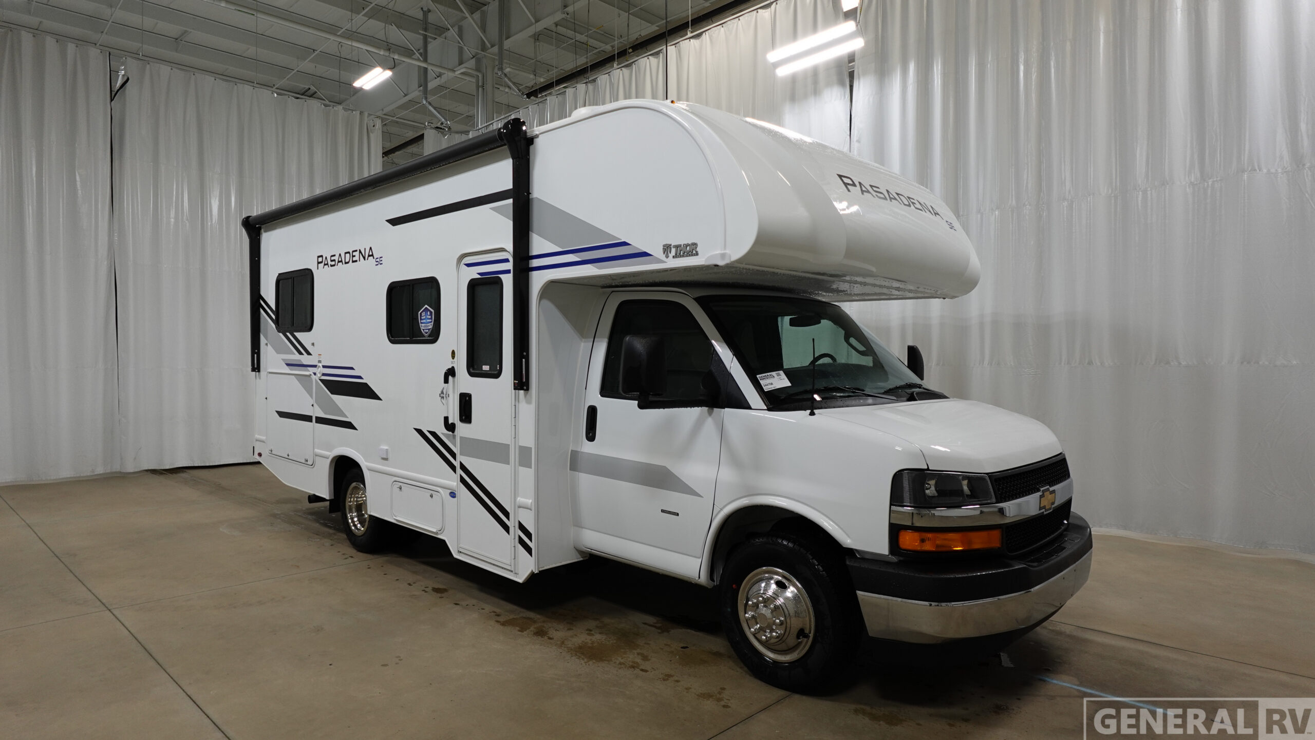 With any Pasadena SE Class C gas motorhome by Thor Motor Coach, you will find convenient amenities, a modern interior, and a reliable Ford E-Series chassis, with an optional Chevy chassis on select models to power your adventures. There is a one-piece fiberglass front cap, and premium one-piece roofing for added strength. Residential vinyl flooring will be easy to keep clean, and you'll love the LED lighting, pressed laminate countertops throughout, and full-extensions ball-bearing drawer guides. These motorhomes also include a 4.0 kW gas generator and a 30-amp shoreline power cord to keep you going, along with a tankless water heater to ensure your comfort!