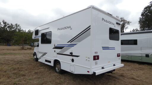 With any Pasadena SE Class C gas motorhome by Thor Motor Coach, you will find convenient amenities, a modern interior, and a reliable Chevy chassis. There is a one-piece fiberglass front cap, and premium one-piece roofing for added strength. Residential vinyl flooring will be easy to keep clean, and you'll love the LED lighting, pressed laminate countertops throughout, and full-extensions ball-bearing drawer guides. These motorhomes also include a generator and a 30-amp shoreline power cord to keep you going, along with a tankless water heater to ensure your comfort!