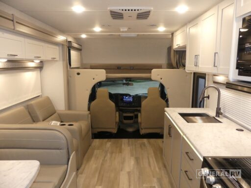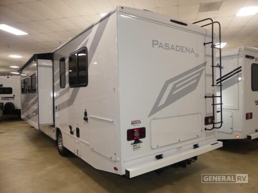 With any Pasadena SE Class C gas motorhome by Thor Motor Coach, you will find convenient amenities, a modern interior, and a reliable Ford E-Series chassis on select models to power your adventures. There is a one-piece fiberglass front cap, and premium one-piece roofing for added strength. Residential vinyl flooring will be easy to keep clean, and you'll love the LED lighting, pressed laminate countertops throughout, and full-extensions ball-bearing drawer guides. These motorhomes also include a generator and a 30-amp shoreline power cord to keep you going, along with a tankless water heater to ensure your comfort!
