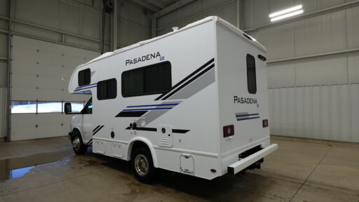 With any Pasadena SE Class C gas motorhome by Thor Motor Coach, you will find convenient amenities, a modern interior, and a reliable Chevy chassis. There is a one-piece fiberglass front cap, and premium one-piece roofing for added strength. Residential vinyl flooring will be easy to keep clean, and you'll love the LED lighting, pressed laminate countertops throughout, and full-extensions ball-bearing drawer guides. These motorhomes also include a generator and a 30-amp shoreline power cord to keep you going, along with a tankless water heater to ensure your comfort!