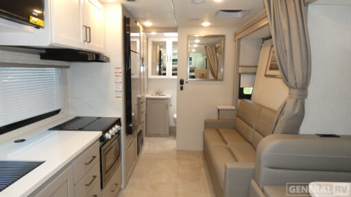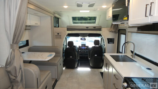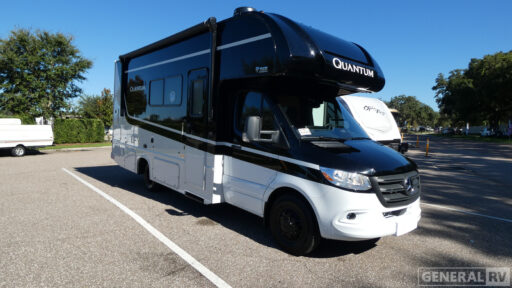 The Quantum Sprinter MB24 also boasts a 14 ft. powered retractable awning, providing the perfect outdoor space to enjoy nature. With its impressive 5000 lbs tow capacity, you can bring along your favorite toys or additional gear. Experience the perfect blend of style, comfort, and practicality with this exceptional RV. For more details or to see it in person, visit your nearest General RV dealership.