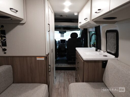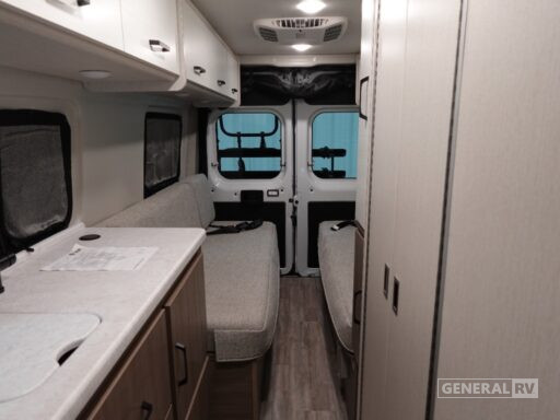 This is the perfect motorhome for you and your partner! The rear area features two sofas that effortlessly convert to a spacious full-width bed, measuring 72” x 66” for a restful night's sleep. A removable table provides a convenient spot for meals, work, or play, while a closet offers ample storage for your belongings. The wet bath is practical and efficient, and a portable cooktop, sink, and fridge provide all the necessary appliances to cook your favorite dishes each day. Swivel chairs add a touch of luxury, and a microwave gives quick and easy meal solutions. With its functional design and comfortable amenities, this motorhome is perfect for couples or solo travelers seeking a relaxing getaway.