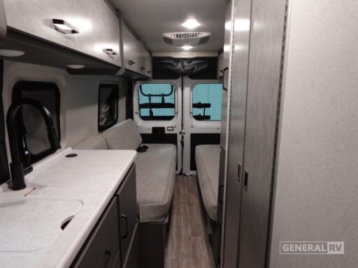 You'll love traveling in this cozy coach for two! The rear sofas convert to a full-width bed when you're ready, and an optional retractable roof rack with Sky Bunk can be added if you're needing additional sleeping space. You can whip up your best breakfast on the single burner induction cooktop or in the microwave oven, and there is a double door refrigerator to keep food fresh. The wet bath includes a cassette toilet, power bath vent with a wall switch and a deluxe shower curtain so you can freshen up each day.