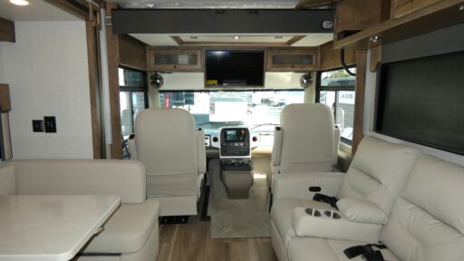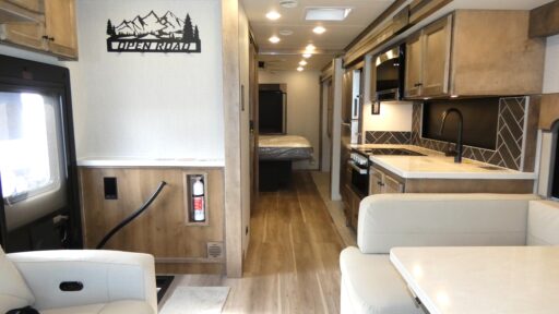 Inside, the Open Road Allegro is designed for relaxation and entertainment. The front living area features theater seating and a booth dinette that converts into an additional sleeping space. With accommodations for up to seven, including a king or queen bed and an optional drop-down bunk, you'll have plenty of room for family and friends. The center bath offers convenience with its stylish plastic and glass shower. Built on a robust Ford F53 chassis with a 335-horsepower engine, this RV delivers power and reliability, making it a fantastic choice for both weekend getaways and extended adventures. For more information, visit your nearest General RV dealership.