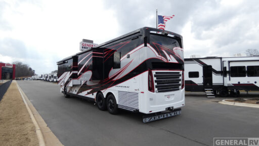 You will experience the epitome of luxury with any one of these Tiffin Motorhomes Zephyr Class A diesel motorhomes! A Cummins X15 605HP diesel engine and Allison 4000 MH 6 speed automatic transmission will power your many adventures. The 12.5 kW Onan Quiet Diesel generator will come in handy and you can store all of your outdoor necessities in the exterior storage space. Comfort and entertainment is as a new level with the Quartz countertops, upscale kitchen appliances, and three TV's, plus the Starlink Pro is now standard with a subscription. New features continue on with a Lippert On-The-Go exterior ladder, hot and cold water access at the front cap, new Generation 13 paint schemes, and more.