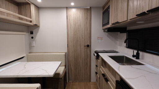 Front RV Queen Bed Booth Dinette Single Axle Exterior Baggage Doors