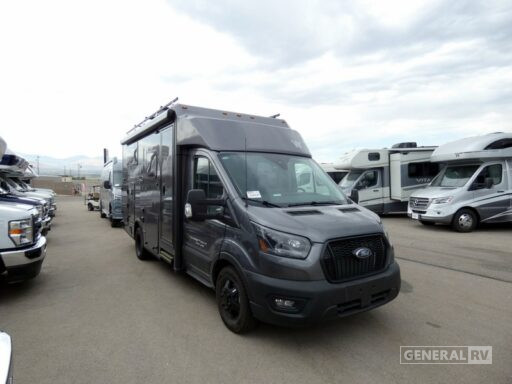 The rear bedroom offers twin beds with ample storage underneath, while the center bath boasts a unique pivoting lavatory wall and a shower with a curtain, ensuring privacy and convenience. The 13 ft. powered retractable awning allows you to enjoy the great outdoors in style, providing shade and comfort. Built on a sturdy Ford Transit chassis and powered by an EcoBoost V6 engine, the EKKO delivers both power and efficiency, making it ideal for those long road trips. With a towing capacity of 5000 lbs and a generous fresh water capacity of 50 gallons, this RV is ready to take you wherever your heart desires. Visit your nearest General RV dealership to experience the Winnebago EKKO 22A for yourself!