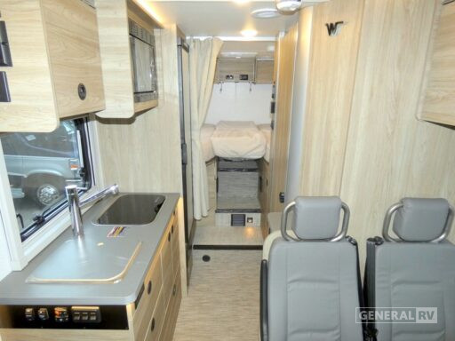 Step into the future of RV living with the 2026 Winnebago EKKO 22A, where adventure meets comfort in a compact yet spacious design. This model is perfect for families or small groups, comfortably sleeping up to four with its cleverly arranged double bed and two bunks. The EKKO’s floorplan is designed to maximize every inch, featuring a center kitchen equipped with a mid-size electric refrigerator and a two-burner cooktop, ensuring you can whip up your favorite meals on the go. The front living area, with its swivel and adjustable galley extension, doubles as a cozy gathering space, perfect for relaxing after a day of exploration.