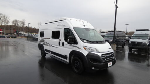 Each Solis Class B gas motorhome by Winnebago sits upon a fuel-efficient Ram ProMaster chassis with a 3.6L V6 engine to power your adventures. You will love the cab conveniences that make each trip enjoyable, like the radio/review monitor system touchscreen and the crosswind assist to keep you steady on the road. Some of the hassle-free amenities you will appreciate are the exterior wash station, the Eco-Hot water system, and the water center control panel located inside the right rear door. Head indoors to find heavy-duty vinyl flooring throughout, a laminate countertop and a stainless steel sink in the galley, plus tinted coach windows for added privacy. The Solis also features off-grid capabilities with its two deep-cycle Group 31 batteries and 220-watt flexible surface solar panel with a controller. Adventures awaits in the Solis Class B gas motorhome!