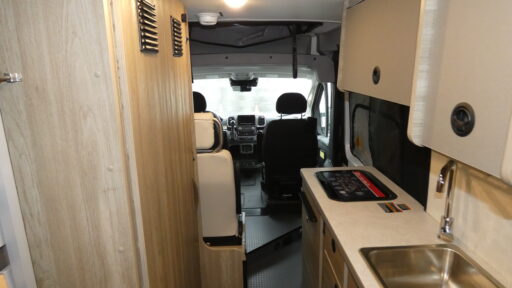 Enjoy a weekend ride in the mountains or make it an overnight stay with versatile sleeping options in this camper van. After you've freshened up in the convenient wet bath, prepare breakfast on the two burner range, and the milk and eggs can go back in the 3.0 cu. ft. single door refrigerator/freezer. This model also includes rear double doors with screens to let the breeze in and keep bugs out!
