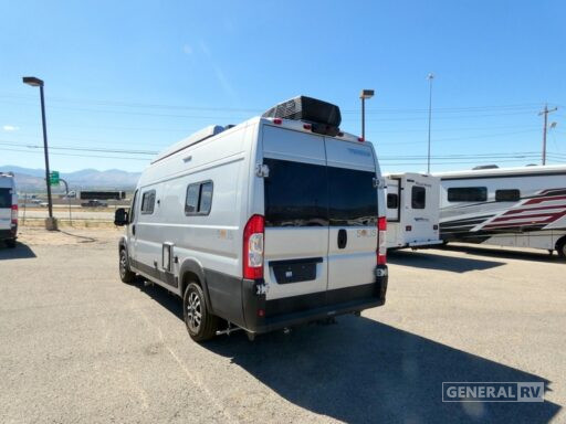 Sleeping arrangements are a breeze with two full-size beds, including a convenient Murphy bed and a pop-top for stargazing nights. The center bath with a wet curtain shower ensures you stay refreshed, while the ample below-floor storage keeps your gear neatly tucked away. Powered by a robust Pentastar VVT V6 engine on a ProMaster 3500 chassis, the Solis 59PX delivers 280 horsepower, ensuring you have the power to explore wherever your heart desires. With a fuel capacity of 24 gallons and a tow capacity of 3,500 pounds, this RV is ready for any journey. Visit your nearest General RV dealership to discover more about this exceptional model and start planning your next adventure!