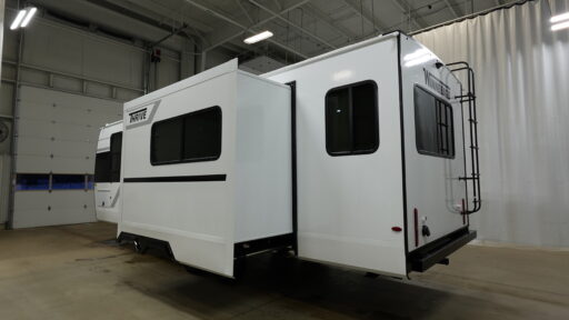 The bedroom offers a tranquil escape with ample storage, ensuring you have everything you need at your fingertips. With a fresh water capacity of 49 gallons and both gray and black water capacities of 40 gallons, your off-grid adventures will be hassle-free. The single slide-out expands your living space, while the large awning provides a shaded outdoor area for enjoying nature. Stay comfortable year-round with a powerful 15,000 BTU air conditioner. Visit your nearest General RV dealership to explore the Winnebago Thrive 25RLS and embark on your next journey in style.