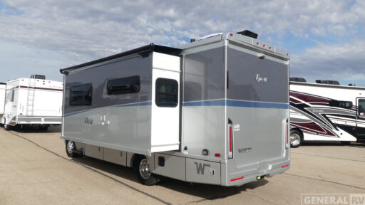 Step inside, and you'll be greeted by a thoughtfully designed interior that boasts a center kitchen equipped with a full-size electric refrigerator and a two-burner cooktop, perfect for preparing delicious meals on the go. The front living area is enhanced by a cabover bunk, offering additional sleeping space or a cozy nook for relaxation. The rear bath, complete with a plastic/glass shower, ensures you have all the comforts of home no matter where your travels take you. Enjoy the outdoors with the 16-foot powered retractable awning, ideal for creating a shaded retreat on sunny days. Whether you're embarking on a weekend getaway or a cross-country adventure, the Winnebago View 24D promises a journey filled with comfort and style. For more information, visit your nearest General RV dealership.