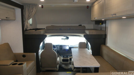 Enjoy the comfort and space brought together in a way that feels made for real family travel. With two slides, this floorplan opens up the main living area so you can actually move around, relax, and settle in without feeling tight on space. The L-shaped dinette gives you a comfortable spot for meals, games, or planning the next stop, while the sofa adds an easy lounge zone for downtime. Up front, the cabover bunk creates a cozy bonus sleeping area that’s perfect for kids or guests, and the cab privacy curtain lets you close off the cockpit when it’s time to turn the living space into a calm, restful retreat. It’s a balanced, family-friendly layout that makes long days on the road feel a lot more like home.