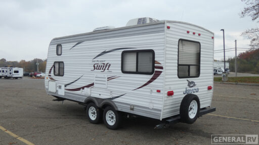 The Jay Flight Swift 198RD travel trailer by Jayco is great for a weekend trip.