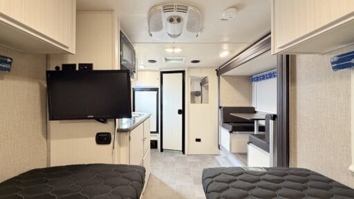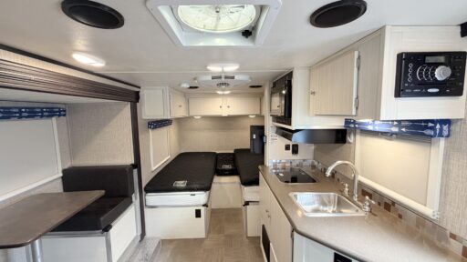 Enter and see how convenient your next camping trip can be. There is a slide out two person dinette straight in from the door, this is the perfect spot to enjoy your meals and it can easily be transformed into additional sleeping space for one at night when needed.