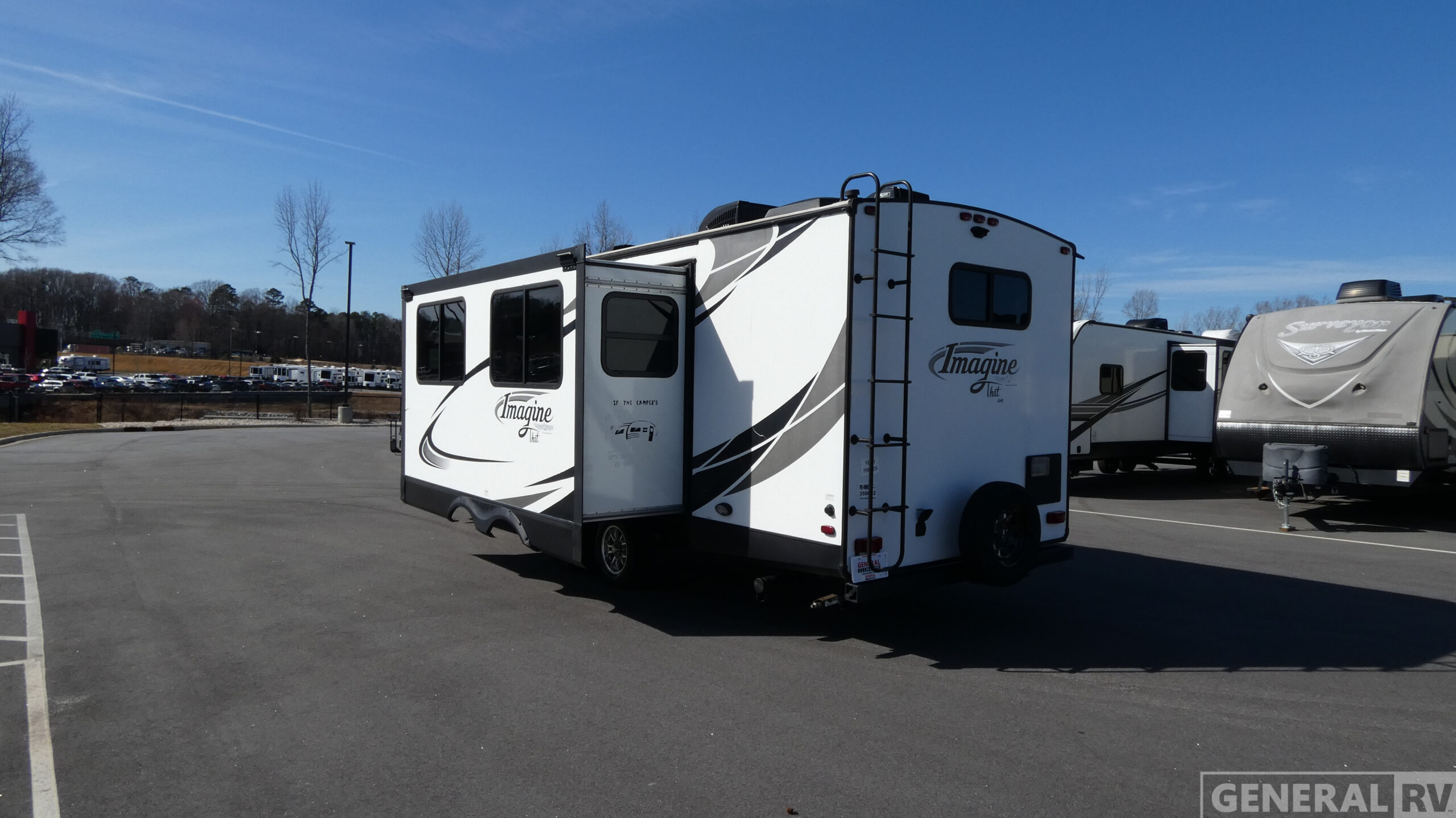 This rear bath layout Imagine travel trailer by Grand Design RV features a single slide for added interior space, plus all the amenities you could need to enjoy spending some time away from home!
