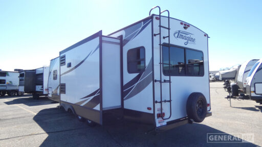 At 33.67 feet in length, the Imagine 2950RL provides ample room for the whole family, comfortably sleeping up to six with a queen bed and convertible sleeping spaces. The front bedroom ensures a restful night's sleep, while the center bath features a radius shower with skylight for a refreshing start to your day. With generous tank capacities and thoughtful features like aluminum entry steps, this RV is designed for convenience and ease. Ready to make this your home on wheels? Visit your nearest General RV dealership for more information!