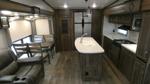 If you enjoy cooking while camping this rear kitchen is sure to be your favorite space in this Cougar 341RKI fifth wheel by Keystone RV. Other features include triple slides, a kitchen island, dual bath entry doors, plus more!