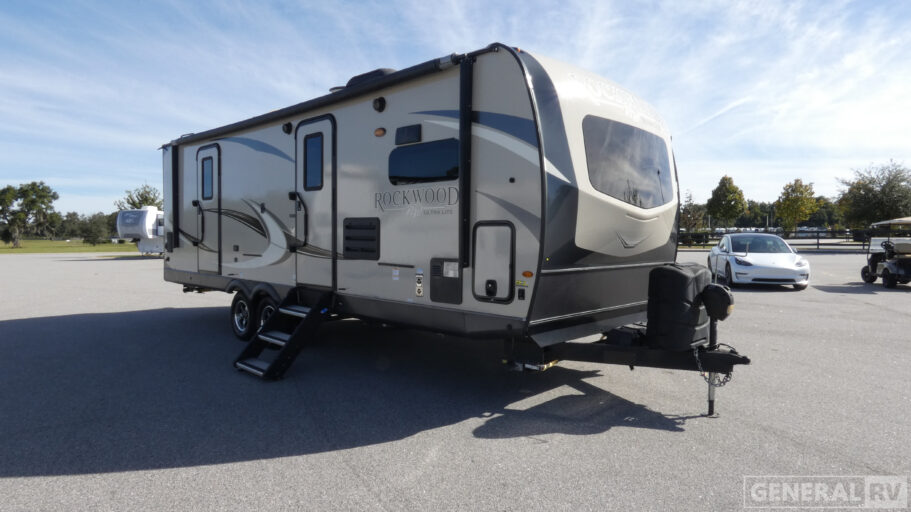 Lighten your load with any one of these Forest River Rockwood Ultra Lite travel trailers! All of these units have full-aluminum frames and laminated fiberglass sidewalls to make a sleek and sturdy unit that will last a lifetime. And with the Torsion axle and Rubber-Ryde suspension, you will enjoy a smooth ride each time you travel. To keep you cool on a warm day, you will enjoy a 13,500 BTU A/C unit, and to warm you up on a cooler day, there is a quick-recovery auto-ignition gas/electric water heater for a hot shower. Between the LED TV with a multi-directional antenna, the WiFi Ranger WiFi Booster Sky 4, and the multi-zone stereo with DVD/CD/AM/FM/MP3 player hook-up and Bluetooth control, you will find entertainment for everyone in your group.