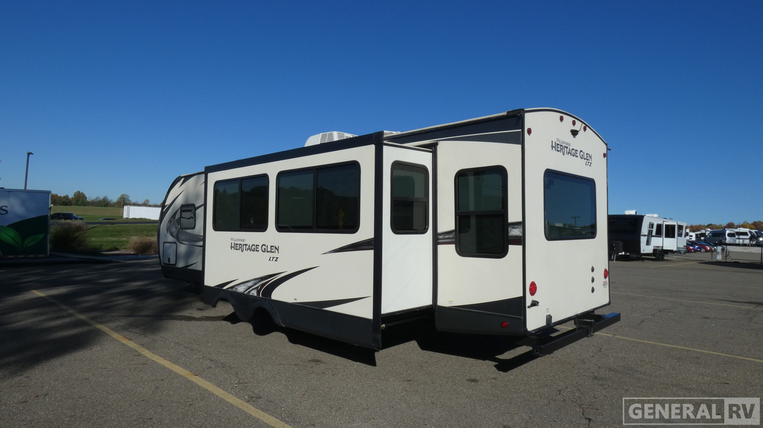 Each Wildwood Heritage Glen travel trailer by Forest River offers a wide stance axle system for stability, a power stabilizer and tongue jacks for quick set up, and Solid-Step entry steps plus an XL Lend-a-Hand entry grab handle to the main entrance for easy access for all. Inside you will love the views from the extra large Max-Tint Panoramic Window package in the main slide, the stainless steel appliances and single bowl undermount sink with roll up sink cover and high rise faucet with pull out sprayer. And the Herringbone Designer's Choice Shaw flooring and Hudson Wood, agreeable grain cabinetry is a nice touch. Choose your favorite trailer today!