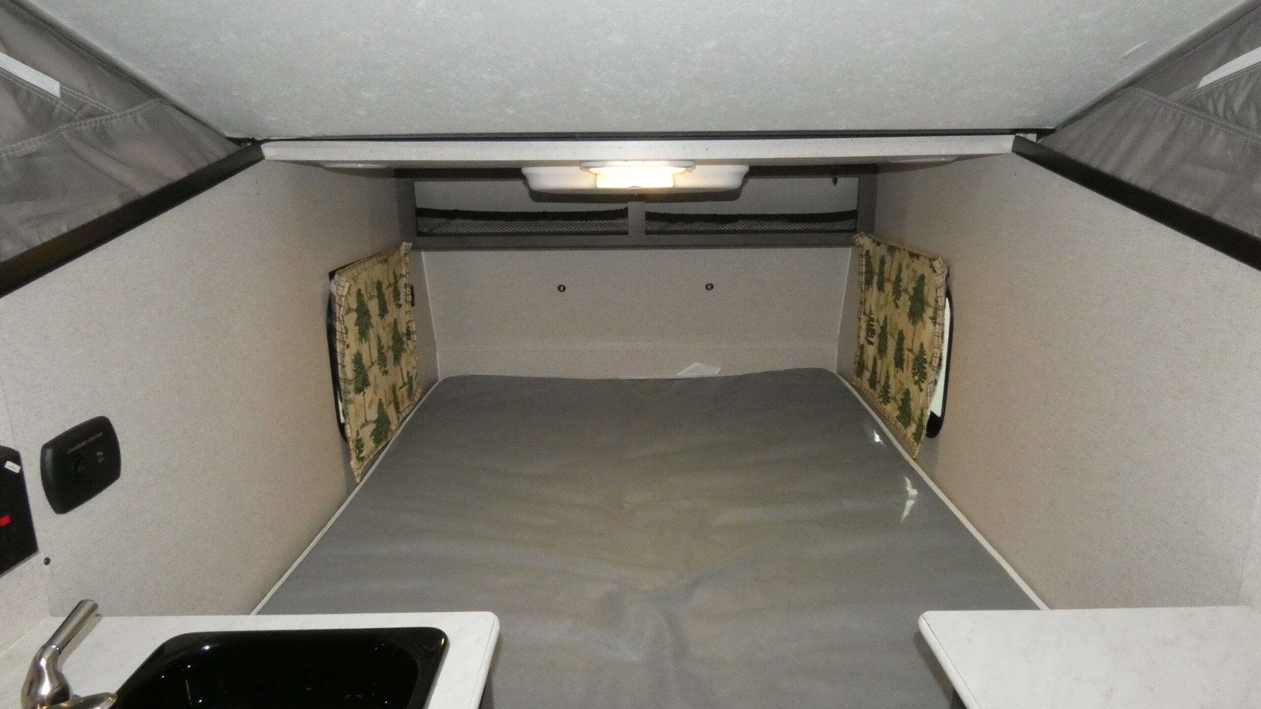 When you enjoy sleeping above ground while camping and getting away quickly, take this Express with you! Not only is it easy to tow, it is easy to store! You will have a 54" x 74" bed to sleep on, a countertop to place your cellphone and keys, and a bench seat to easily take your shoes off. You can stand upright and walk around as well.