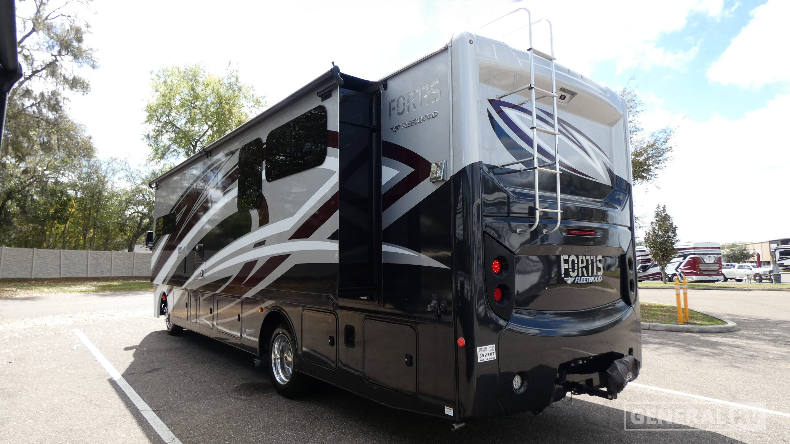 The Fleetwood Fortis Class A gas motorhome is absolutely going to be the best thing you've ever seen! Awarded the "Top RV Debut" from RV Business and the "Best of Show-New Unit" from RV News, the Fortis contains modern design features, the newest technology, a powerful engine and chassis, and the highest quality in its construction. Some of the features that stand out the most are the 100W solar panel, WiFi Ranger Sky4, exterior entertainment center with 50" LED TV, the reclining/swivel cab seats, and the remote power/heated mirrors with turn signals and side cameras. The Fortis also has four-point fully automatic hydraulic leveling jacks, and you can even add an optional KING universal satellite system to keep your Fortis completely modern, functional, and up-to-date.