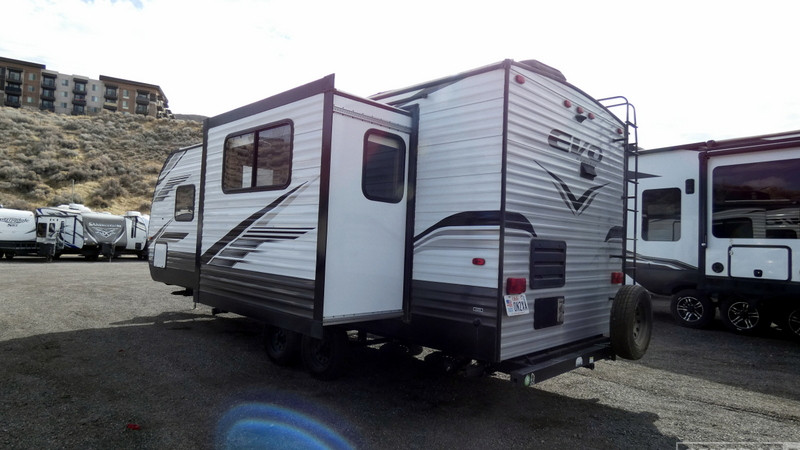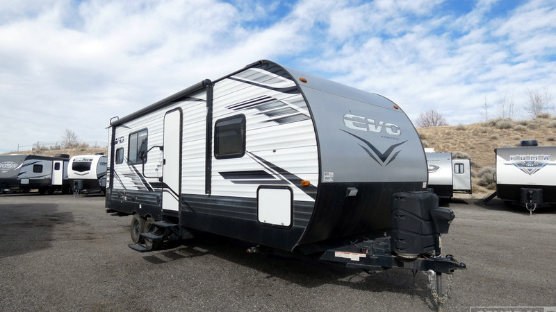 Whatever it is that you choose to do, let it be done right with the Forest River EVO travel trailer! These trailers have a 2,000-LB tongue jack, EZ Lube axles, an 8" rust-resistant powder-coated I-beam chassis, electric self-adjusting brakes, a Schwintec electric slide system, and an enclosed underbelly with heat duct. The EVO also comes with an aerodynamic aluminum front cap, radius compartment storage doors, a crowned roof for water drainage, safety-glass windows, a front lower gravel guard, and compartment door holding latches. Moving on to the interior is where you will find the flush-mount ceiling speakers, solid-surface countertops, pillowtop memory foam mattress, and extra-large country kitchen sink with recessed covers.