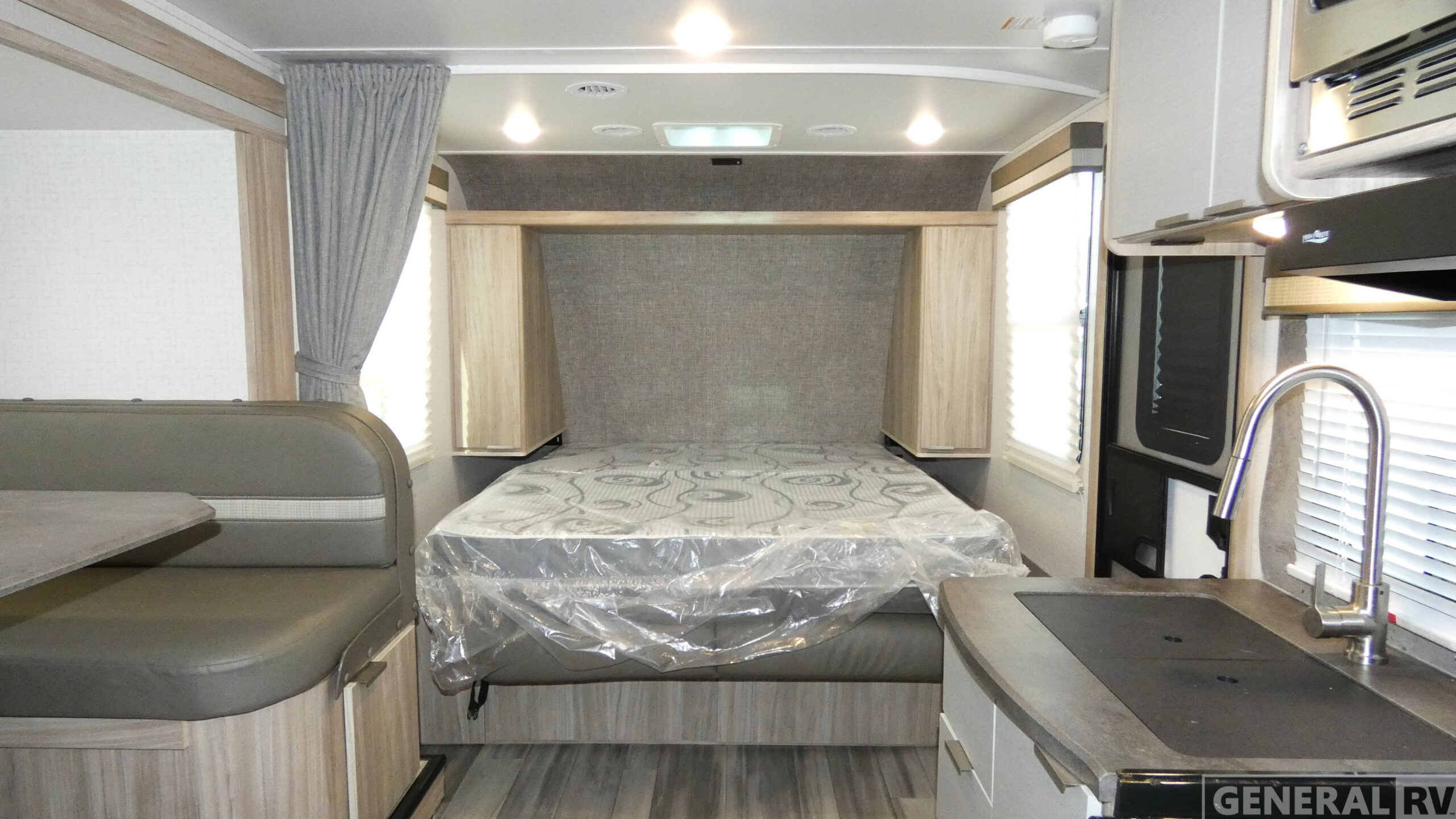 If you're looking for versatility then you need this travel trailer! Depending on the time of day you enter will determine whether you see the Murphy bed or the sofa up front. The 44" x 72" booth dinette slide can be used for eating your meals, playing games, and sleeping space at night. The full rear bathroom is equipped with everything you will need to freshen up each morning and provides a skylight above the shower and a wardrobe for your clothes and linens, plus a pocket door to save space. The LED TV is conveniently located so you can watch your favorite shows, plus the pantry offers a place to store your snacks and such for easy access. And the cook will love all the amenities to make meals including the handy flip-up counter.