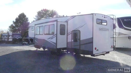 With any Impression mid-profile fifth wheel by Forest River, the focus of the design is comfort and value, built with quality craftsmanship and attention to customer's desires in each Impression! The exterior includes upgraded E-rated Goodyear Endurance tires made in the U.S.A., custom exterior graphics package, and One Touch automatic leveling system for easy setup. There is also an enclosed docking station and a gel coat fiberglass front cap with an automotive windshield with LED lights for style and beautiful views. The fully heated and enclosed AccessiBelly has removable underbelly panels and offers four seasons of travel. The interior has oversized opening windows in the living area for more natural lighting and good air flow, a stainless steel single bowl sink with high rise faucet with a pulldown sprayer to easily clean the dishes, and a porcelain foot flush toilet to mention a few comforts and conveniences.