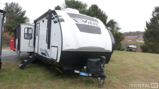 Each Vibe travel trailer by Forest River includes Hyper Lyte construction and a durable laminated "Aluma Frame" for years of use. The heated and enclosed underbelly allows you to extend your camping season, and the LED-lit exterior speakers will keep the party going as you grill outdoors and visit with family. Inside, you'll find LED lights to keep everything bright and open, a Bluetooth stereo, roller shades for your privacy, and many more amenities per region. These models also include cable and satellite prep and a digital TV antenna with a booster so you can stay connected to the outside world if you choose. Make the easy choice and choose a Vibe travel trailer today!