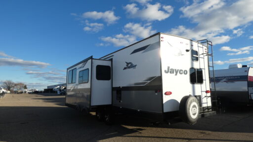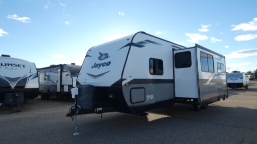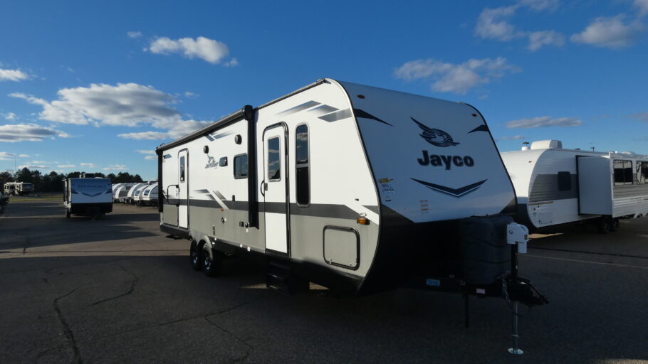 Check out the #1-selling Jayco Jay flight travel trailer! These trailers are built upon I-Class™ cambered structural steel I-beams and a fully integrated A-frame. They have axles with electric, self-adjusting brakes and easy-lube hubs to make your journeys smooth, and the Magnum Truss roof system will withstand many years and types of travel. You'll have large exterior downspouts, a front diamond plate, four stabilizer jacks, and a friction-hinge entry door with shade-prep window. The interior is where you'll find great comfort and modern design.