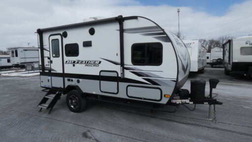 The Jay Feather Micro travel trailers by Jayco are for those looking for lightweight camping, while not sacrificing comfort and convenience. The modern retro graphics package is sure to be eye-catching, and the newly designed interiors will have you feeling right at home. Each model features an American-made frame with an integrated A-frame, Goodyear off-road tires, plus galvanized steel and impact-resistant wheel wells for added protection during transport. Some of the interior comforts you will enjoy are the residential vinyl flooring with cold crack resistance, screwed and glued cabinetry, and LED lighting. Adventure is waiting for you with a Jay Feather Micro travel trailer. Choose your favorite floorplan today!
