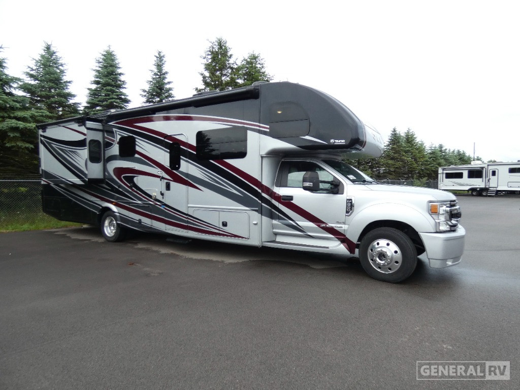 Experience the ultimate in luxury and versatility with the 2022 Thor Motor Coach Omni BT36. This magnificent motorhome is built on a robust Ford F600 chassis, powered by a formidable Power Stroke V8 engine that delivers 330 horsepower and an impressive 825 lb-ft of torque, ensuring you have the power and performance for any journey. With its sleek design and spacious layout, this RV comfortably sleeps up to eight, featuring a king-sized bed, queen-sized convertible space, and a cozy cab-over bunk, making it perfect for family adventures or entertaining guests.