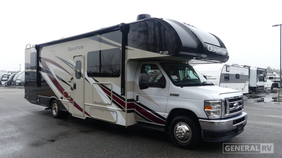 With any Quantum Class C gas motorhome, the construction includes a welded tubular steel floor, a welded tubular aluminum roof and sidewall cage construction, a premium one-piece TPO roof, plus black framed windows or frameless slider windows depending on the Quantum you choose. The interior offers decorative glass inserts in the kitchen overhead cabinet doors and kitchen accent countertop lights for the style, full extension metal ball-bearing drawer guides, plus a 7-inch touchscreen dash radio with a back-up monitor the driver will appreciate. The Platinum package comes standard and offers stainless steel wheel liners, premium window privacy roller shades, and an outside shower plus more! No more dreaming, you can choose your favorite Quantum and start your RVing lifestyle!